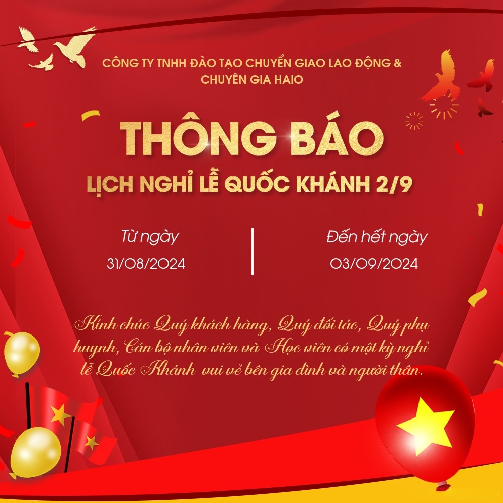 THÔNG BÁO NGHỈ LỄ QUỐC KHÁNH NGÀY 2 THÁNG 9 NĂM 2024